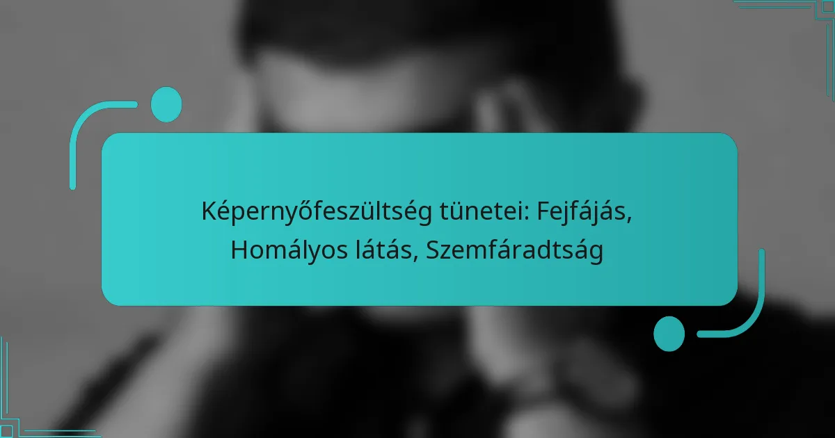 A képernyőfeszültség gyakori tünetei közé tartozik a szemfájdalom, fejfájás, homályos látás, száraz szemek, valamint nyaki vagy vállfájdalom. Ezek a tünetek gyakran a digitális eszközök hosszan tartó használatából adódnak, megfelelő szünetek vagy helyes ergonómia nélkül.
